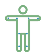 The blue circles you can see across the upper and lower limbs refer to those parts of the body where CRPS is most likely to emerge; their colour reflects those temperature changes associated with the condition, as well as the 'hot' to 'cold' acute to chronic transition. The simple, anonymous, design of the figure reflects the fact that CRPS affects males, females, young and old alike, while green was chosen to embody peace, growth, safety and harmony, and our collective aim to realise positive change in the lives of CRPS patients everywhere.